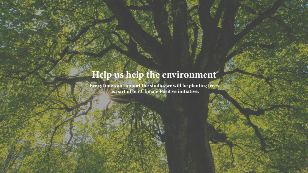 Every time you support the studio, we will be planting trees as part of our Climate Positive initiative.